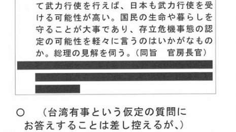 集団的自衛権を行使できる「存立危機事態」を巡り、台湾有事も該当し得るとした高市首相の国会答弁。やっぱりあれは、高市首相の暴走だった。事務方が用意した答弁原稿には記載されていなかったことが、立憲民主党の辻元清美参院議員が12日までに受け取った質問主意書に対する政府の回答で分かっ…(続きを読む)