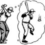 レッスンでは、 「下半身は動いて止まれ」 「ダウンスイングは下半身から」 と、うるさく言われる。 しかし、これはゴルフ特有の動きではない。 野球をやったことのない…