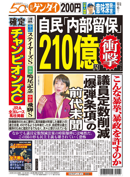 「Just shut your mouths. And invest everything in me!(いいから黙って全部俺に投資しろ!)」──。12月1日、都内で開催されたサウジアラビア主催の国際金融会合の講演で、そう言い放った高市首相。人気漫画「進撃の巨人」の名セリフを引…(続きを読む)