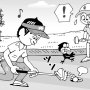 ティーショットを曲げて林の中に入った。辺りを捜したらボールは大木の根元にあり、四方に張り出した太い根の間にあった。通常のスタンスが取れずテークバックできないので、木の根をまたいで股抜きショットしてボ…