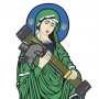 対戦車ミサイル「ジャベリン」を携行する聖母マリアーー。カナダ人男性がウクライナを支援するためにデザインしたキャラクター「聖ジャベリン」のグッズが爆発的に売れ、寄付金の総額が1億円を軽く突破している。…