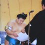 元幕内で今は歌手 大至さんは断髪式で五木ひろしを熱唱