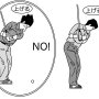 「頭はボールの後ろ」がスイングの鉄則とされている。フルショットをするときはアイアンもスタンスの真ん中よりはやや左足寄りにボールを置いて、スタンスの真ん中に頭を構えればボールよりは多少後ろにくる。けれ…