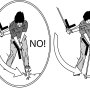 「右足は目標線と直角」が構えの基本とされている。右足を目標線と直角に構えれば右ひざを前に向けておけるので、腰を横に動かさず、構えた位置で体をひねってバックスイングできるとよく書いてある。 と…