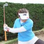 田野井章江LPGAティーチングプロは、正しく構えるには左の頬をイメージするといいとアドバイスする。 「頭を下に向けず、ボールは鼻越しに見てください。すると不思議なことに、左のほっぺたが飛球線と…