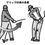「バックスイングでもフォロースルーでも、手(グリップ)は終始体の正面」とよくいわれる。 バックスイングで体を目標の後方に向けたら、手も胸の正面からはずれないようにする。フォロースルーでも同じよ…