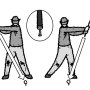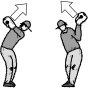 両腕の構え方によってスイングは大きく左右される。基本的には両手でクラブを持って頭上に振り上げたら、そこから力を抜いてクラブヘッドを地面に下ろしたときの両腕(肘)が一番自然な構え方である。 と…