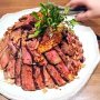 醤油屋倉庫で食べる焦がしバター醤油の山盛りステーキ
