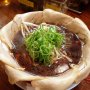 最近、肉食女子の間で人気なんは、肉の塊を山盛りに積み上げた一皿。なんとゆうても見た目が華やか。それを大勢で、崩しながら食べるんが楽しいんや。茅場町駅すぐの「灯ノ番」は、オフィス街の中とは思えないほど…