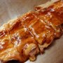 アチチと骨をつまみ隙間から肉をこそげ取る