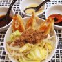 巨大餃子は軽くかむだけで肉汁の大洪水