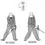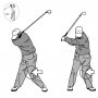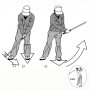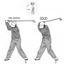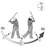 上体を起こしておいてクラブを水平に振ることは、誰でも簡単に出来る。 体の回転に沿ってクラブを平ら(横)に振れば、インサイドからインサイドにクラブヘッドは弧を描いて振り抜けていく。 体…