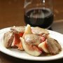 梅和えの大根サラダはあるが、へしこの塩味とほのかなえぐみが加わると全体が締まる。オリーブオイルも使われているので、白ワインが合う。 へしこは福井の名産でさばの糠漬け。 「へしこは塩で水…