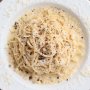 「カチョエペペ」はローマでよく食べられているパスタ料理。すりおろしたチーズと黒胡椒で和えたシンプルな一品だ。 「さらにニンニクを加えることで、どんなお酒にも合う、ちょっとジャンクな感じになるんで…