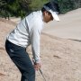 体重をカカトに乗せて…アイアンのつま先下がりの打ち方