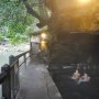 湯の黒と渓谷の緑のコントラストが美しい壁湯天然洞窟温泉