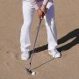 深いバンカーからは重心低くハンドレイトに構えて脱出する