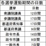 選挙運動をしてもよいのは公示日・告示日から投票日の前日までで、日数は選挙の種類ごとに公職選挙法で定められている(表)。しかし、これらの期間は「ウソ」である。公示日・告示日以前に候補予定者は実質的な選…