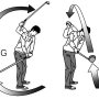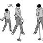テークバックの始動では手先を使ってヘッドを動かさない方がいいと前回言いました。器用な手先でヘッドを動かすと、ヘッドが必要以上にインサイドに上がってしまうからです。始動はどこまでかというと、グリップが…