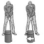 取っ手が紐になっているバケツ(キャンバス地のトートバッグや大きめの目土袋でも可)にゴルフボールや土を入れて重くしたら、それを両手で持ってその場でグルグルと回ってみる。 プロレス技のジャイアン…