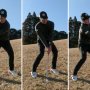 急なつま先下がりのライからのアプローチ アドレスはオープンに構えて