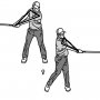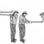 キャディーバッグを腰に担いだシャドースイングで下半身の感覚を養う