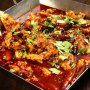 兜の形の鍋で馬肉をしゃぶしゃぶ、焼き焼き、ジューッと揚げる