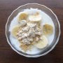 花粉症の症状を抑えたい…きな粉と果物入りヨーグルトを