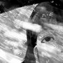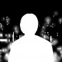 (84)暗幕の前に布を被せられた男