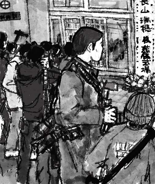 <25>斎場の周囲を報道陣が取り巻き