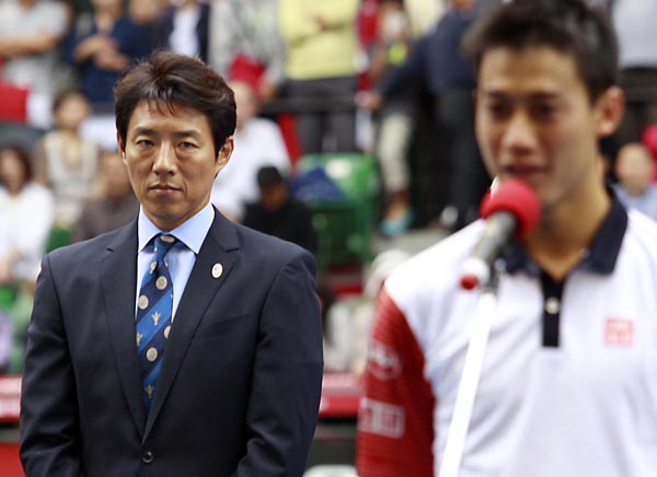 教え子を見つめる松岡修造/(C)日刊ゲンダイ