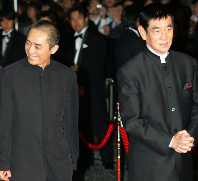 熱烈歓迎(左はチャン・イーモウ監督)/(C)AP