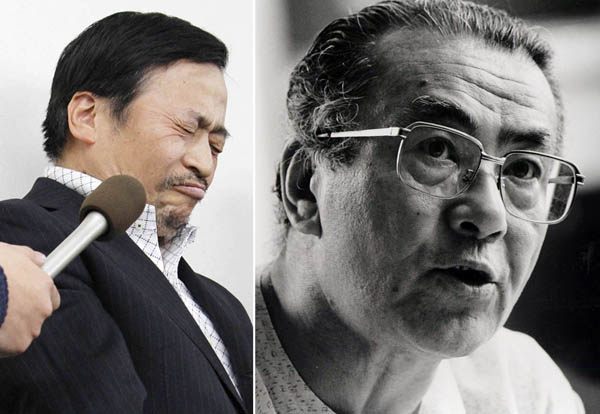 悲痛な表情で取材に応じるラサール石井(左)/(C)日刊ゲンダイ