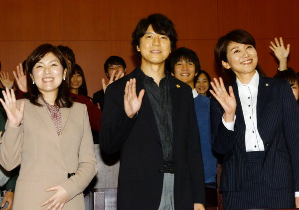 左から原作者・柚月裕子氏、上川隆也、松下由樹/(C)日刊ゲンダイ