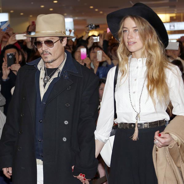 来日したジョニー・デップと婚約者で女優のアンバー・ハード/(C)AP