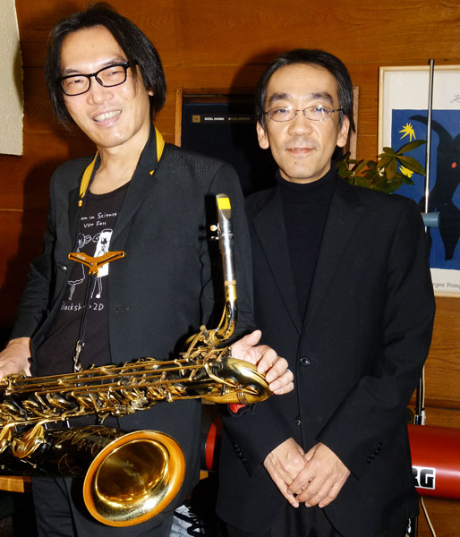バリトンサックス奏者の吉田隆一氏(左)と/(C)日刊ゲンダイ
