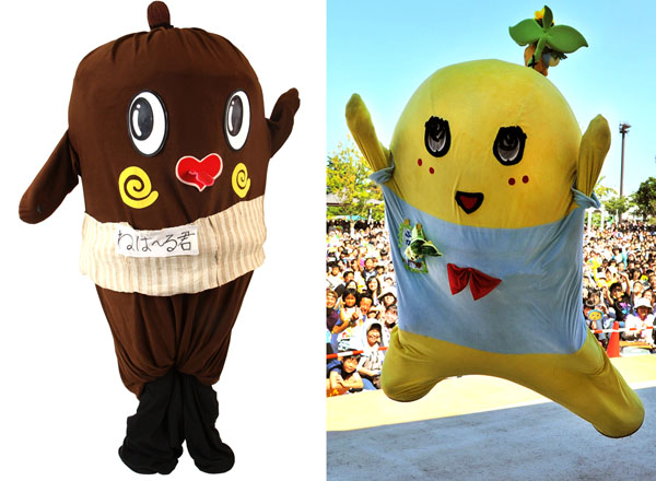 ゆるキャラ“2トップ”のねば~る君(左)とふなっしー(C)日刊ゲンダイ