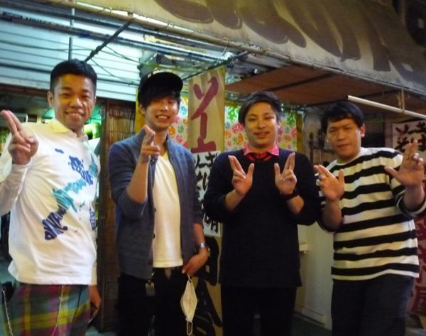 8.6秒バズーカー(中央2人)の貴重なプライベート写真(C)日刊ゲンダイ
