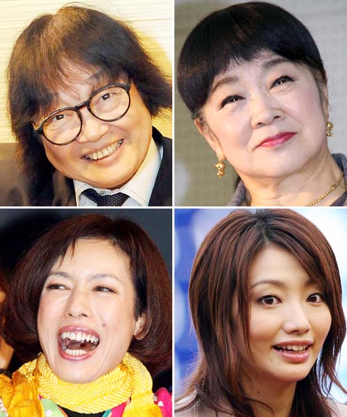 左上から時計回りに、大木凡人・大山のぶ代・真鍋かをり・久本雅美(C)日刊ゲンダイ