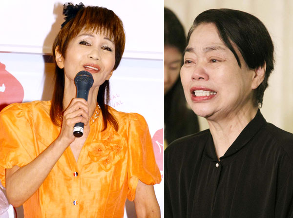 会見で号泣する今くるよ(右)/(C)日刊ゲンダイ