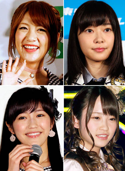 左上から時計回りに、高橋みなみ、指原莉乃、川栄李奈、渡辺麻友(C)日刊ゲンダイ