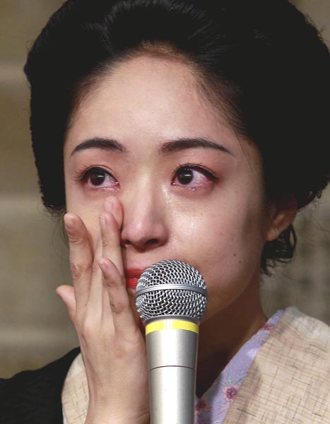 会見で涙を見せた井上真央(C)日刊ゲンダイ