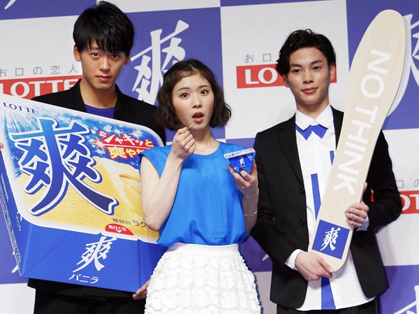 左から竹内涼真、松岡茉優、柾木玲弥(C)日刊ゲンダイ