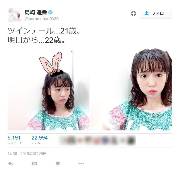 体調はもう万全?(島崎遥香のツイッターから)