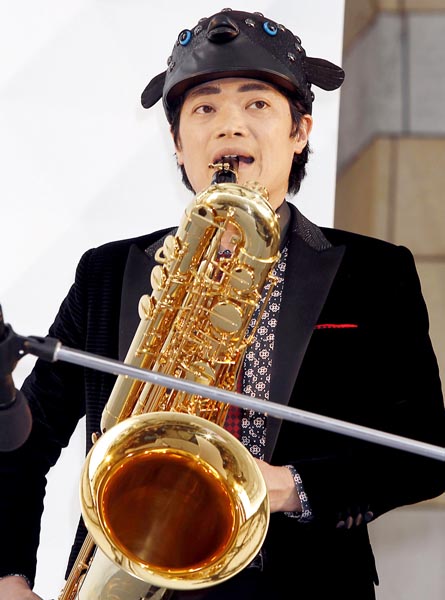 黒いスーツ姿でサックス披露(C)日刊ゲンダイ