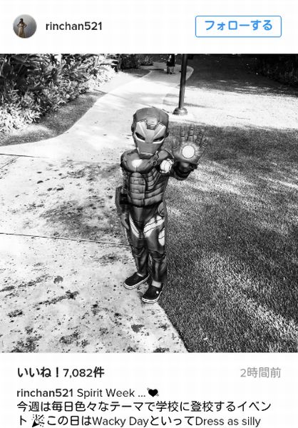 梨花の息子がアイアンマン姿 「かわいすぎる」と称賛の嵐