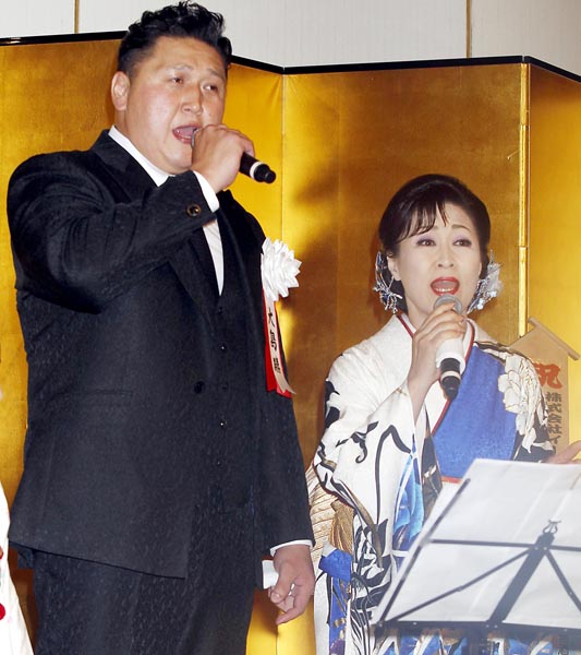 スーツ姿で熱唱 大島親方が島津悦子とデュエット曲披露