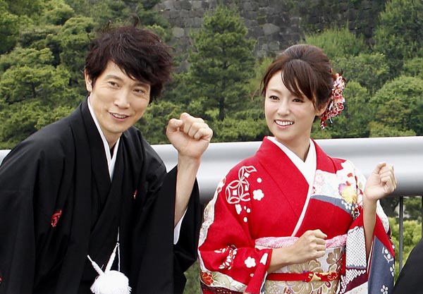和服姿の佐々木蔵之介と深田恭子(C)日刊ゲンダイ