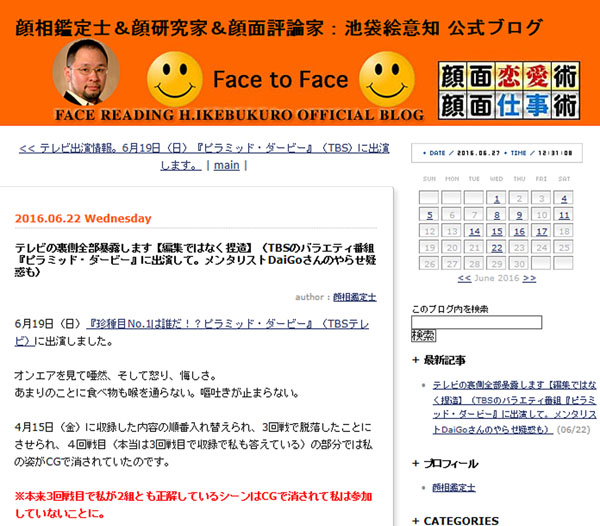 池袋絵意知氏の告発(本人のオフィシャルサイトから)