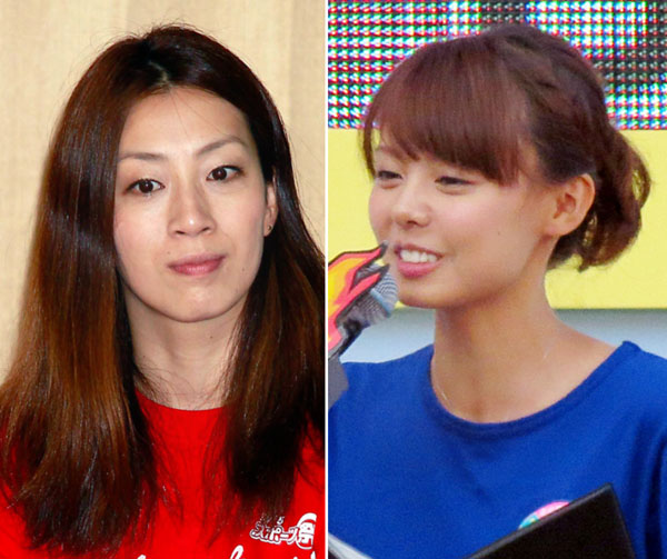 寺川綾(左)とフジ宮澤アナ(C)日刊ゲンダイ